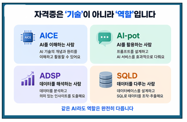 AI를 이해하고(AICE), 데이터를 해석하고(ADSP), 실제로 활용할 수 있는지(AI-pot).