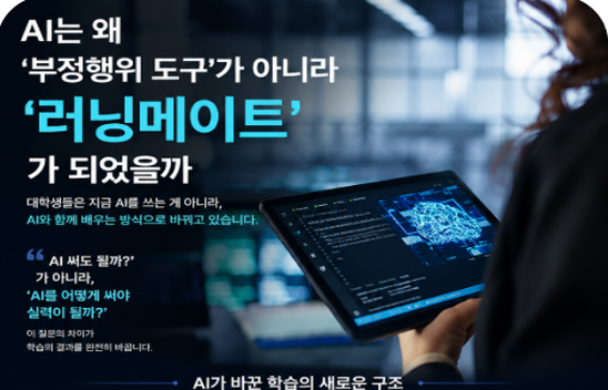 AI는 왜 ‘편법’이 아니라 ‘실력’이 되었을까교수도 쓰라고 말하는 순간, 질문의 기준이 바뀌었습니다혹시 요즘 대학생들이 과제를 어떻게 하는지 떠올려본 적 있나요?처음에는 저도 단순하게 생각했습니다.AI로 대신 쓰는 거 아닌가, 조금 편해진 정도 아닐까.그런데 실제로 캠퍼스를 들여다보면 조금 다릅니다.노트북 화면 속에는 항상 하나의 공통점이 있습니다.Gemini, Claude 같은 AI가 이미 ‘도구’가 아니라 함께 일하는 파트너로 자리 잡고 있었습니다.0.1 문제는 ‘사용 여부’가 아니라 ‘사용 방식’이었습니다 보통 이렇게 생각합니다. "AI를 쓰면 사고력이 떨어지지 않을까?"그래서 규제하거나, 사용을 제한해야 한다고 말하죠.그런데 현장은 조금 다르게 움직이고 있습니다.어떤 교수는 아예 이렇게 말합니다.ㅣ "AI를 활용해서 과제를 완성해보세요."처음에는 낯설게 느껴질 수 있습니다.하지만 이건 단순한 허용이 아니라 기준 자체가 바뀌고 있다는 신호입니다.겉으로는 ‘편해진 도구’처럼 보이지만, 실제로는 ‘문제를 푸는 방식’이 바뀌고 있는 상황에 가깝습니다.0.2 학생들은 이미 ‘정답 생성기’로 쓰지 않습니다 현장에서 만난 학생들의 사용 방식은 예상과 조금 달랐습니다.한 학생은 긴 논문을 AI로 요약합니다. 하지만 그대로 쓰지 않고, 핵심만 다시 재구성합니다.또 다른 학생은 코드 생성을 요청합니다. 하지만 결과를 그대로 제출하지 않고, 오류를 검증하고 수정합니다.이 과정이 중요합니다.AI는 결과를 주지만, 학생은 그 결과를 해석하고 판단합니다.문제는 여기서 끝나지 않습니다." 이제 학생들은 AI를 ‘답을 주는 도구’가 아니라 ‘생각을 확장하는 도구’로 쓰고 있습니다.이 지점이 중요합니다.AI 활용의 핵심은 출력이 아니라, 해석입니다.0.3 그래서 질문을 이렇게 바꿔야 합니다. "AI를 써도 되는가?"가 아니라 "AI를 어떻게 써야 실력이 되는가?"이 차이는 꽤 큽니다.전자는 윤리의 문제이고, 후자는 역량의 문제입니다.그리고 지금 대학가는 분명 후자의 방향으로 이동하고 있습니다.0.4 실력은 ‘결과’가 아니라 ‘질문’에서 갈립니다 이 변화는 평가 방식에서도 드러납니다.과거에는 결과물이 중요했습니다. 정답을 맞추는 것이 실력이었죠.그런데 지금은 조금 다릅니다.어떤 질문을 했는지, 어떤 방식으로 답을 끌어냈는지, 그 결과를 어떻게 검증했는지가 더 중요해졌습니다.이걸 한 문장으로 정리하면 이렇습니다." 지식을 아는 것보다, 질문을 설계하는 능력이 더 중요해졌습니다.0.5 AI 활용은 3단계로 나뉩니다 이 흐름을 구조적으로 보면 세 단계로 나눌 수 있습니다.첫째, 검색 단계: AI를 빠른 정보 탐색 도구로 활용합니다.둘째, 생성 단계: 초안, 코드, 아이디어를 만들어냅니다.셋째, 해석 단계: 결과를 검증하고, 자신의 생각으로 재구성합니다.겉으로는 모두 AI를 쓰는 것처럼 보이지만, 실제로 실력 차이는 마지막 단계에서 발생합니다.0.6 결국 핵심은 ‘AI 사용’이 아니라 ‘사고 방식’이었습니다 처음에는 AI가 학습을 대신한다고 생각했습니다. 그런데 실제로 들여다보면 조금 다릅니다.AI는 학습을 대체하는 것이 아니라, 사고의 출발점을 바꾸는 도구에 가깝습니다.AI를 잘 쓰는 학생은 답을 빨리 찾는 사람이 아니라, 질문을 더 잘 던지는 사람입니다.0.7 캠퍼스는 이미 다음 단계로 넘어가고 있습니다 그래서 지금의 변화는 단순한 유행이 아닙니다.교수는 AI 활용을 요구하고, 학생은 AI를 전제로 사고를 확장합니다.이 구조 속에서 새로운 기준이 만들어지고 있습니다.결과보다 과정, 정답보다 질문, 암기보다 활용.이 흐름은 앞으로 더 강해질 가능성이 높습니다.AI는 더 이상 ‘편법’이 아닙니다. 이미 실력을 증명하는 방식의 일부가 되었습니다. 얼마나 많이 아는지가 아니라, 얼마나 잘 질문하는가. 그 차이가 앞으로의 경쟁력을 결정하게 됩니다.글_ 조민희 대학생 기자