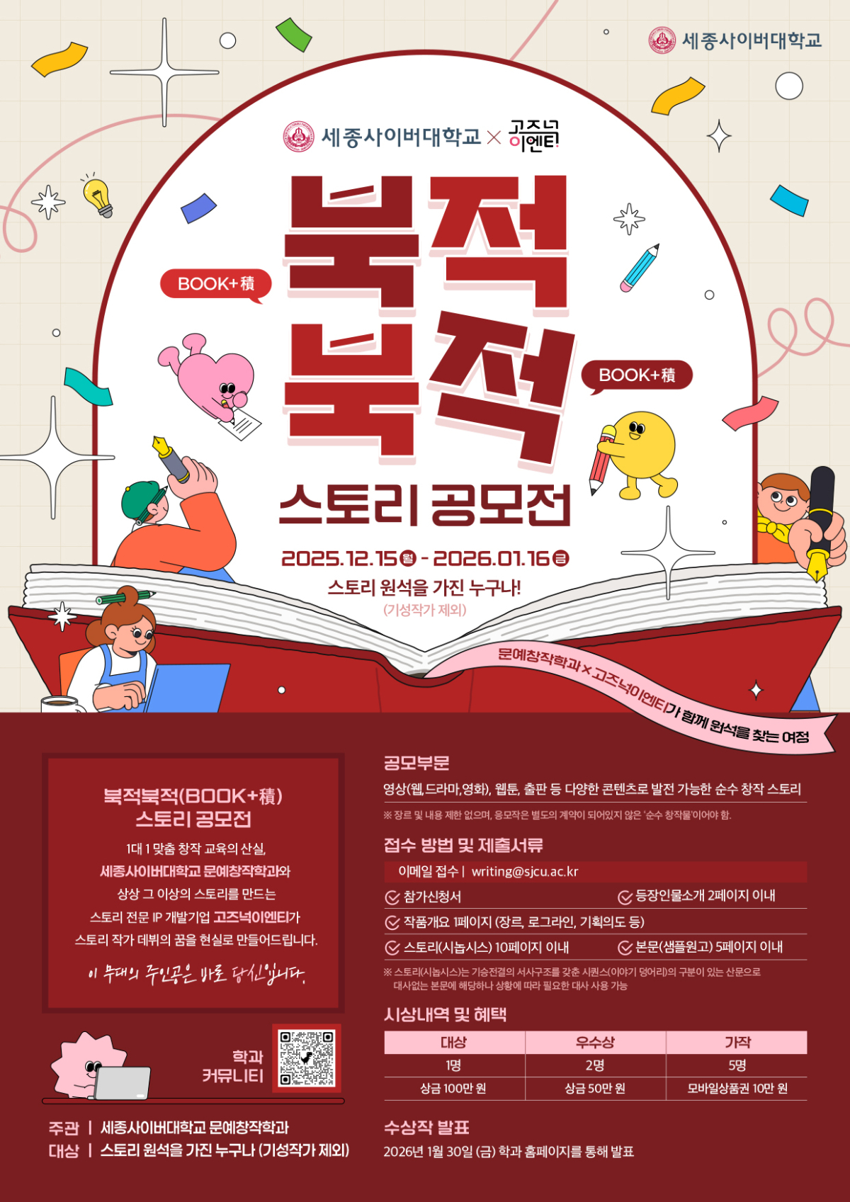 2025 세종사이버대 문예창작학과 X 고즈넉이엔티와 함께하는 북적북적(BOOK + 積) 스토리 공모전