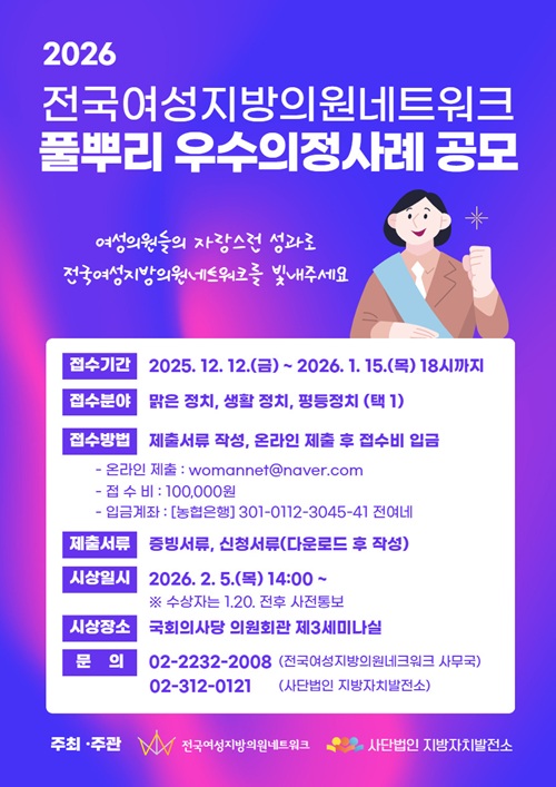 2026 전국여성지방의원네트워크 풀뿌리 우수의정사례 공모