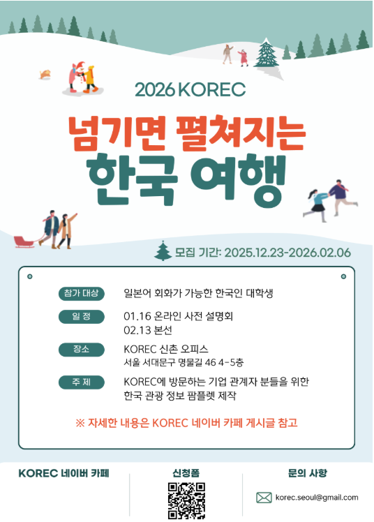 - 장소: KOREC 신촌 오피스(서울 서대문구 명물길 46 4-5층)