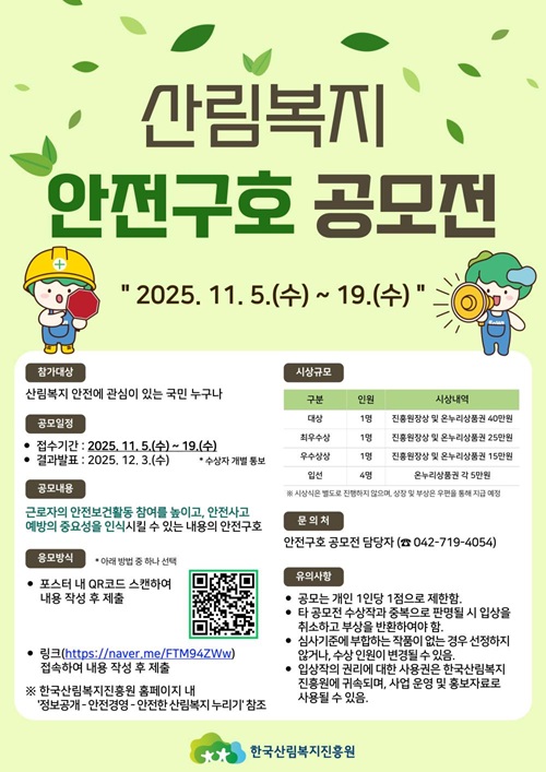 - 한국산림복지진흥원 안전구호 공모전 담당자 042-719-4054