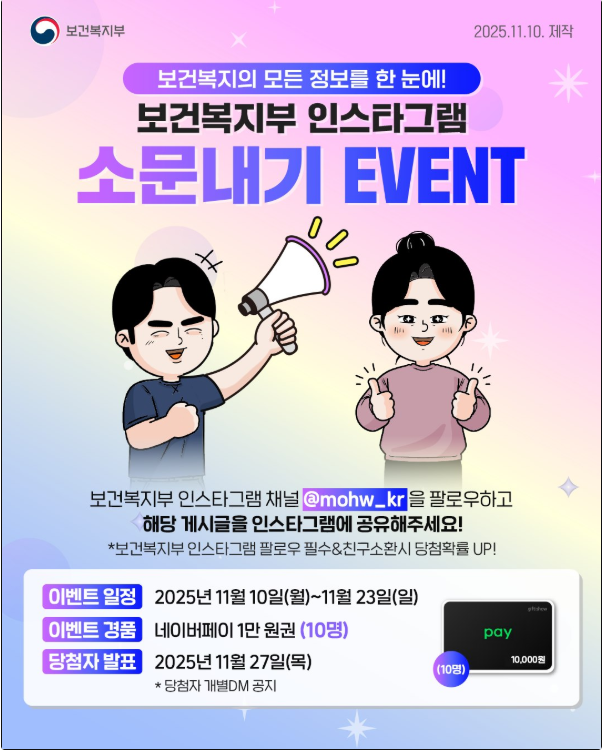 - 보건복지부 인스타그램 채널 @mohw_kr 팔로우하기!