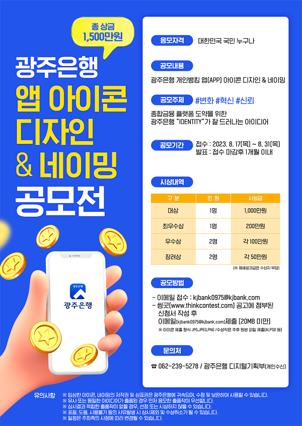 - 이메일 : kjbank0975@kjbank.com (광주은행 디지털기획부)