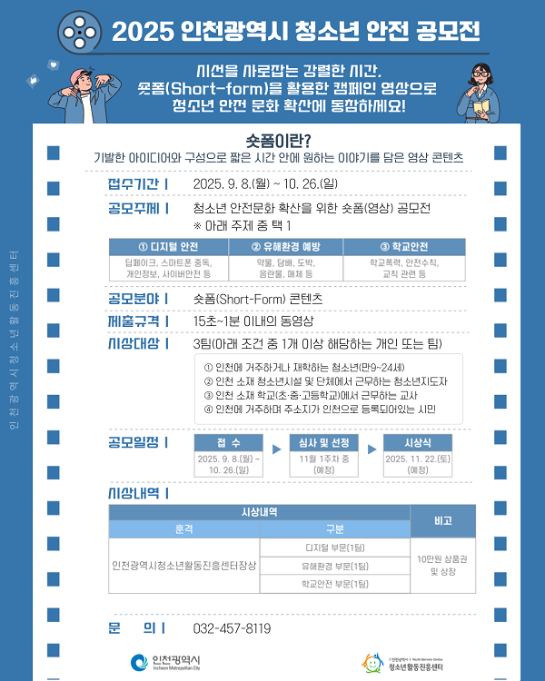 ● 공모 주제: 청소년 안전문화 확산을 위한 숏폼(영상) ※ 아래 주제 중 택 1