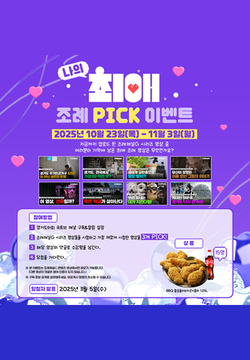 - 본 이벤트는 조례채널G 콘텐츠 시리즈 영상에서만 응모가 가능합니다.