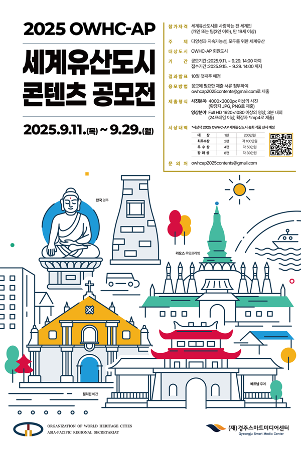 「2025 OWHC-AP 세계유산도시 콘텐츠 공모전」을 개최합니다! 많은 참여 바랍니다.