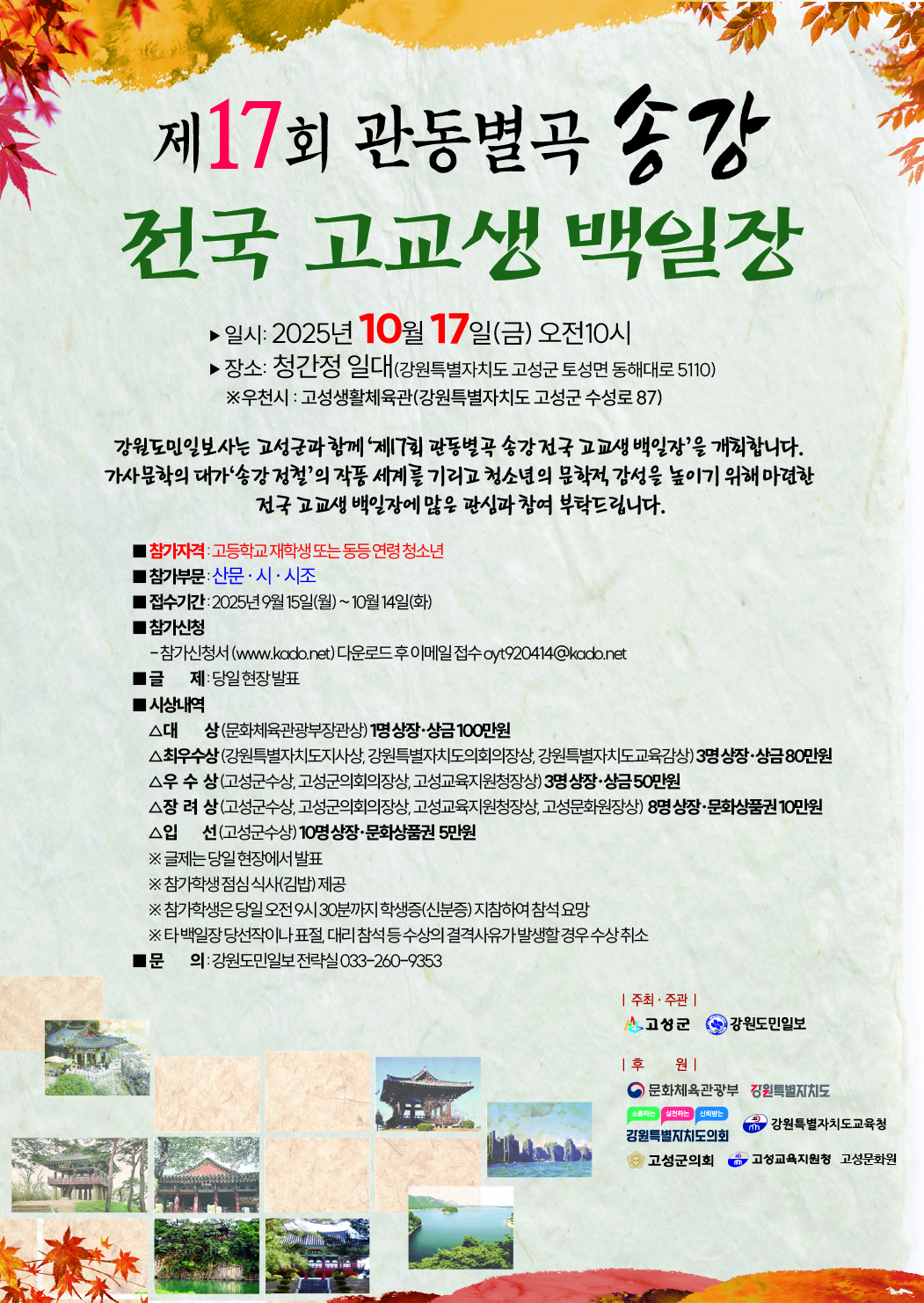 제17회 관동별곡 송강 전국 고교생 백일장 요강