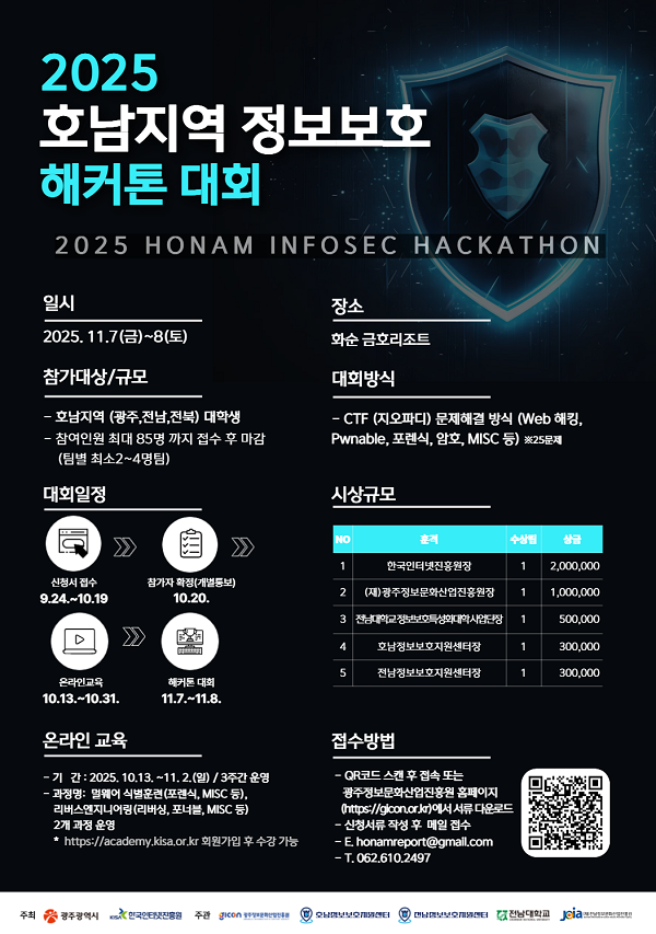 호남지역 대학생의 정보보호 분야 수준향상을 위한 「2025 호남지역 정보보호 해커톤 대회」를 개최합니다!