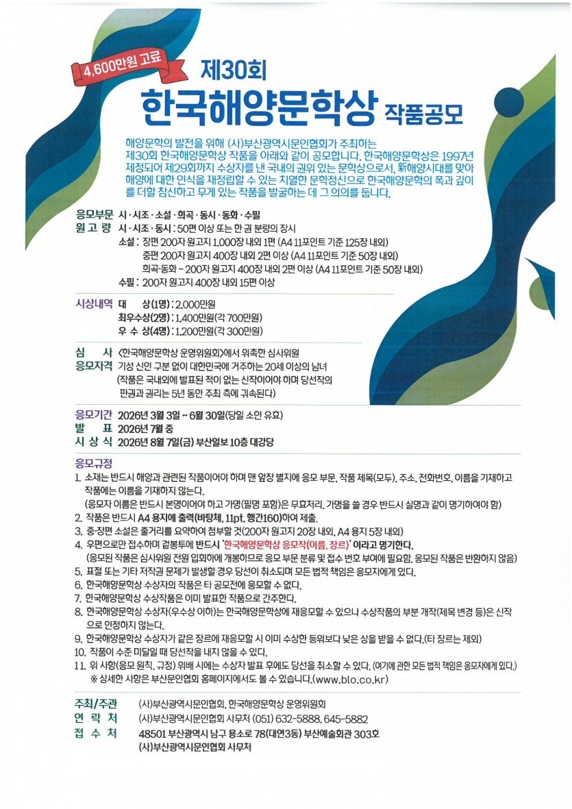 - 접수 기간 : 2026년 3월 7일 ~ 4월 30일