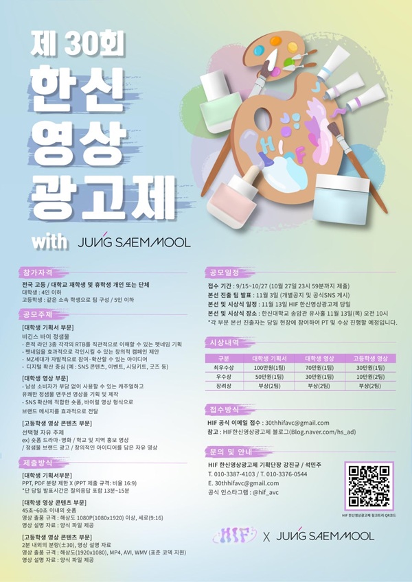 - 본선 및 시상식 일정: 2025년 11월 13일 (목) 오전 10시 HIF 한신영상광고제 당일