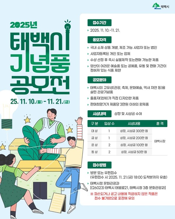 - 우편 접수: 태백시 태붐로21, 태백시청 문화관광과(26023)