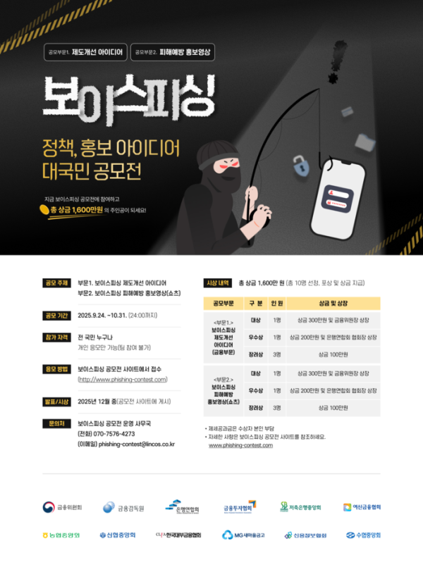 - 보이스피싱 공모전 운영 사무국 : 070-7576-4273 / phishing-contest@lincos.co.kr