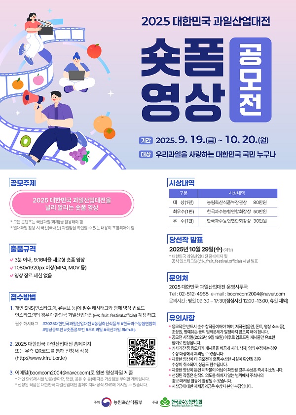 - 「2025 대한민국 과일산업대전」을 널리 알리는 숏폼 영상