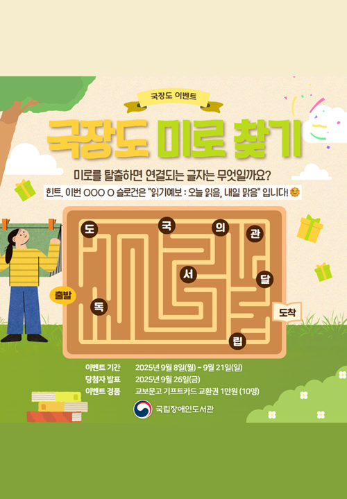 - 당첨 시 닉네임(아이디) 전체가 국립장애인도서관 SNS, 홈페이지 등의 이벤트 발표에 공개될 수 있음을 동의하신 것으로 간주됩니다.