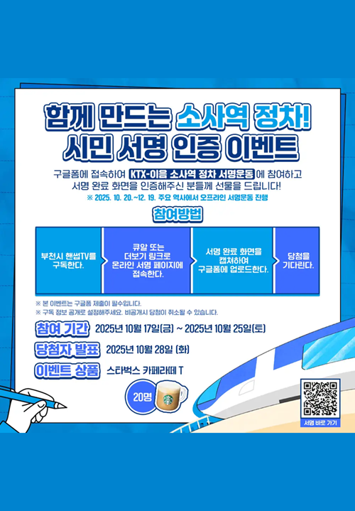 - KTX-이음 소사역 정차 서명운동 참여 후 인증하기