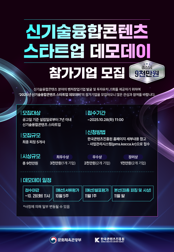 - 2025년 신기술융합콘텐츠 스타트업 데모데이에 함께할 기업을 모집합니다.
