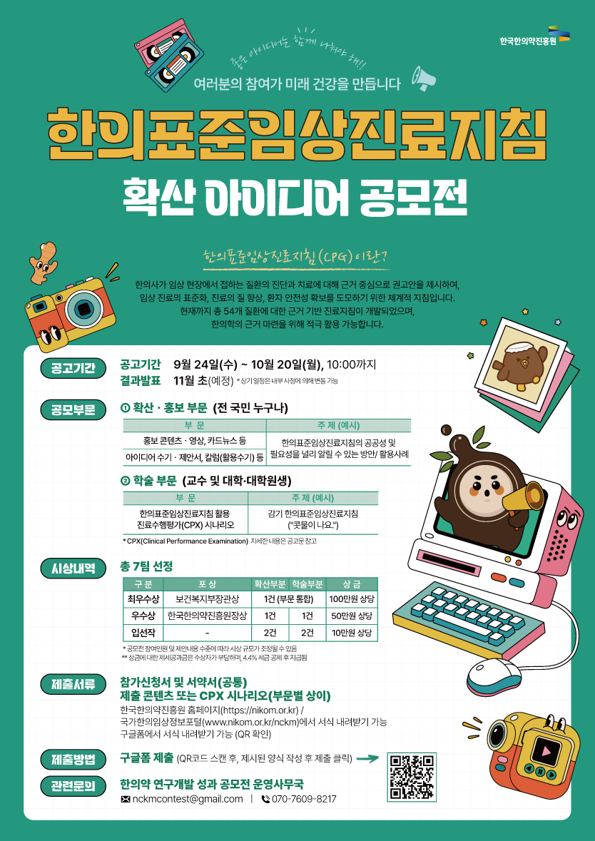 문의 전화번호: 한국한의약진흥원 공모전 운영지원팀 (☎070-7609-8217)