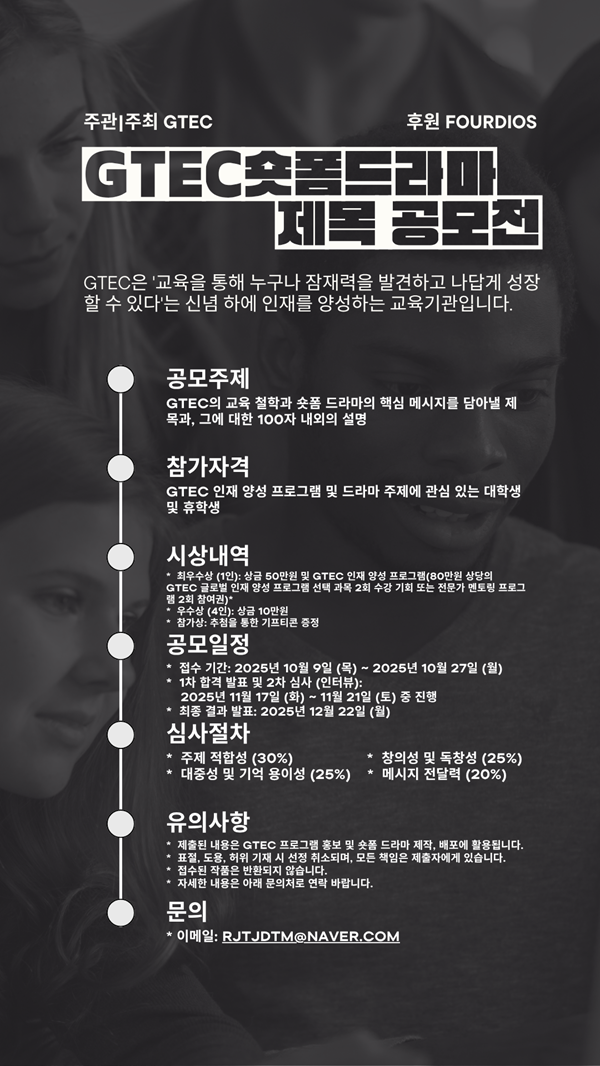 - 최우수상 (1인): 상금 50만원 및 GTEC 인재 양성 프로그램