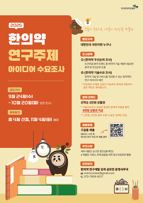 · 전화번호: 한국한의약진흥원 공모전 운영지원팀 (☎070-7609-8217)