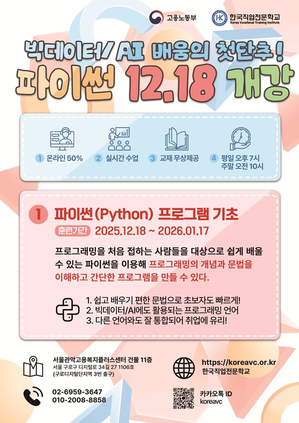 바쁜 여러분을 위해 50%의 주말 대면 교육은 서울 한국직업전문학교에서 진행합니다.