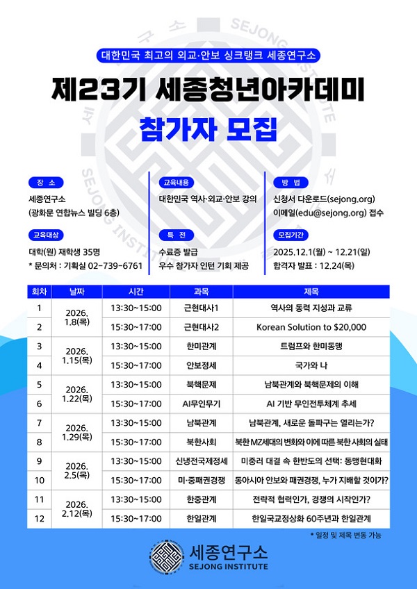 - 세종연구소 컨퍼런스룸(광화문 연합뉴스빌딩 6층)