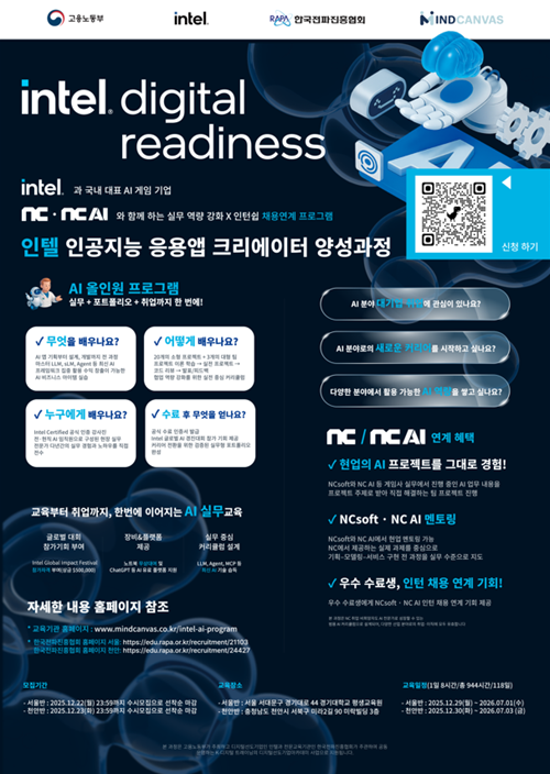 - 과정 수료 시 인텔(Intel) 수료증 발급