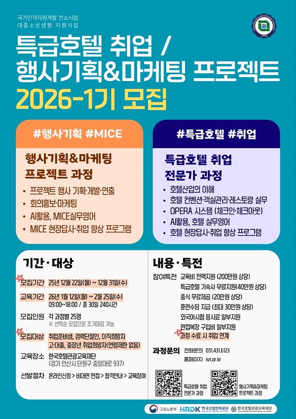 - 월~금, 09:30~18:10 960시간● 진행 장소- 하이미디어아카데미 신촌점 별관5강의장● 신청 기간- 2025년 12월 23일 ~ 2025년 12월 30일● 참여 혜택- 교육비전액지원