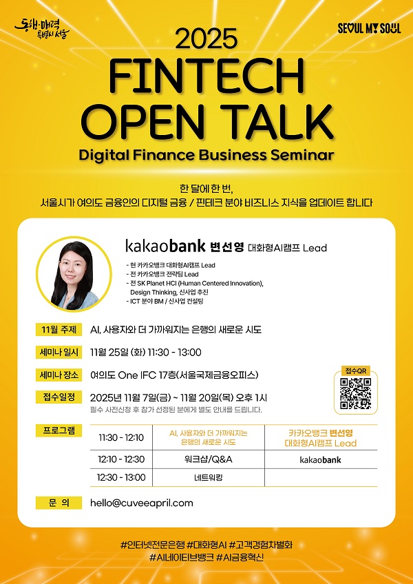 - 한 달에 한 번, 서울시가 여의도 금융인의 핀테크분야 비즈니스 지식을 업데이트 합니다