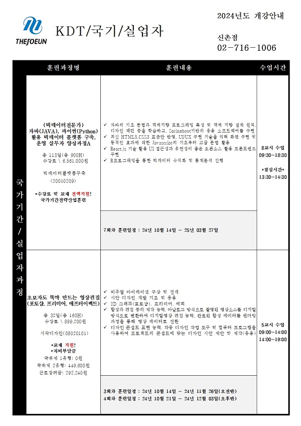 하지만 개강일 기준 4대 보험 가입이 되어있거나, 아르바이트를 병행하는 경우 수강이 어렵습니다.