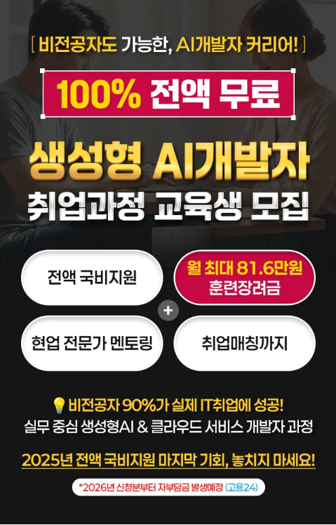 - 교육 기간 : 2025.12.09.~2026.6.19. (6개월 취업연계과정)