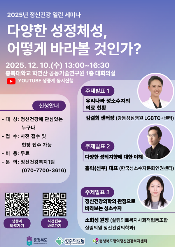 2025년 정신건강 열린 세미나 '다양한 성정체성, 어떻게 바라볼 것인가?'