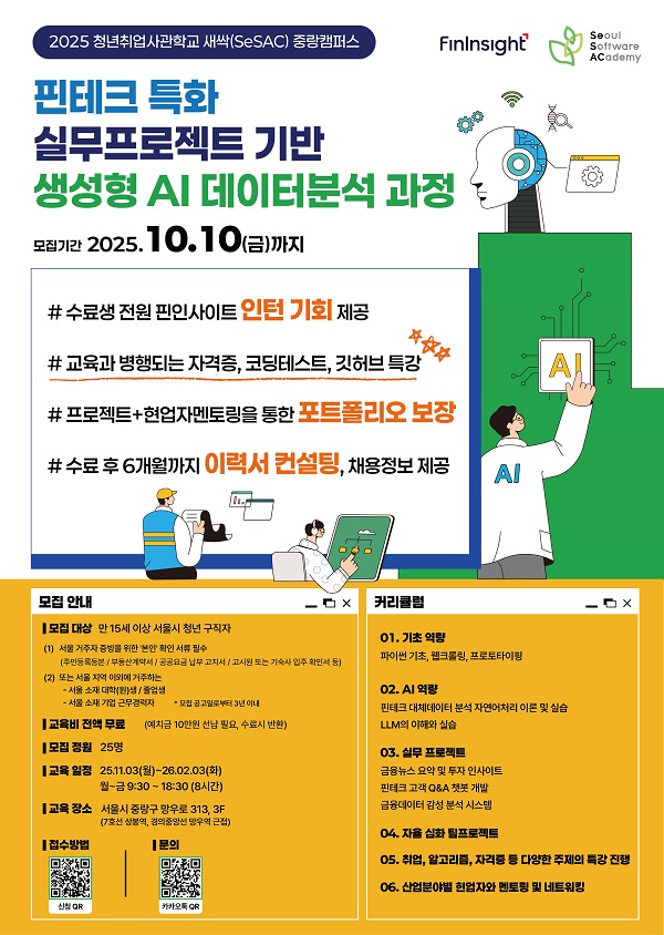 과정명 : 핀테크 특화 실무프로젝트 기반 생성형AI 데이터분석 과정 (청년취업사관학교 중랑캠퍼스)