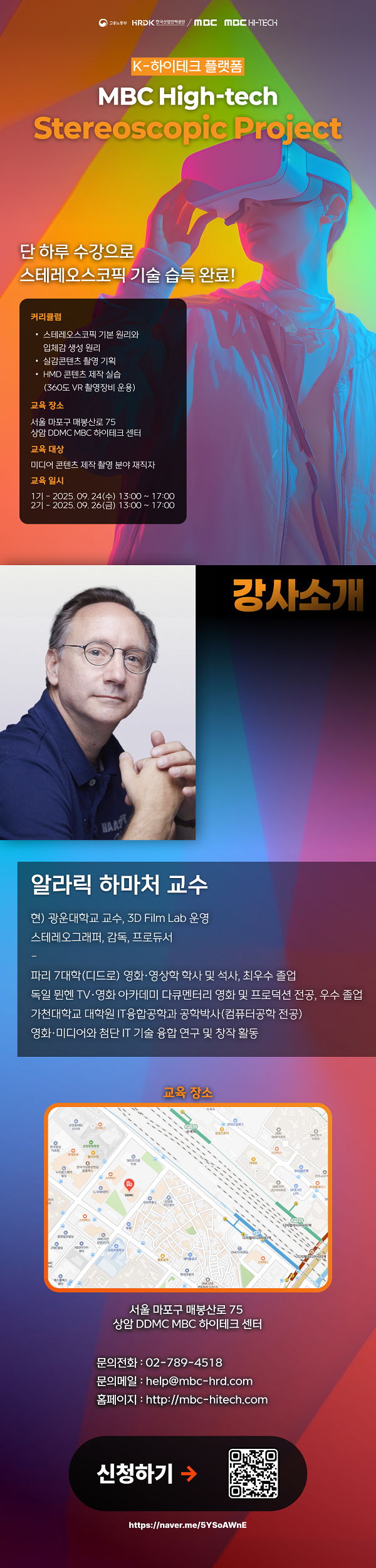 미디어 콘텐츠 제작 촬영 분야 재직자들을 위한 알라릭 하마처 교수님의 스테레오스코픽 교육!