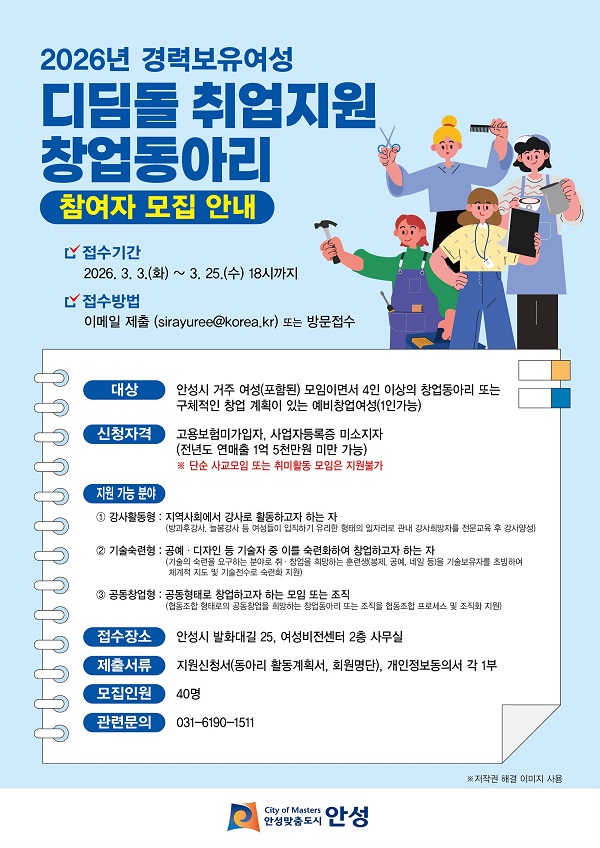 ● 접수장소 : 안성시 발화대길 25, 여성비전센터 2층 사무실
