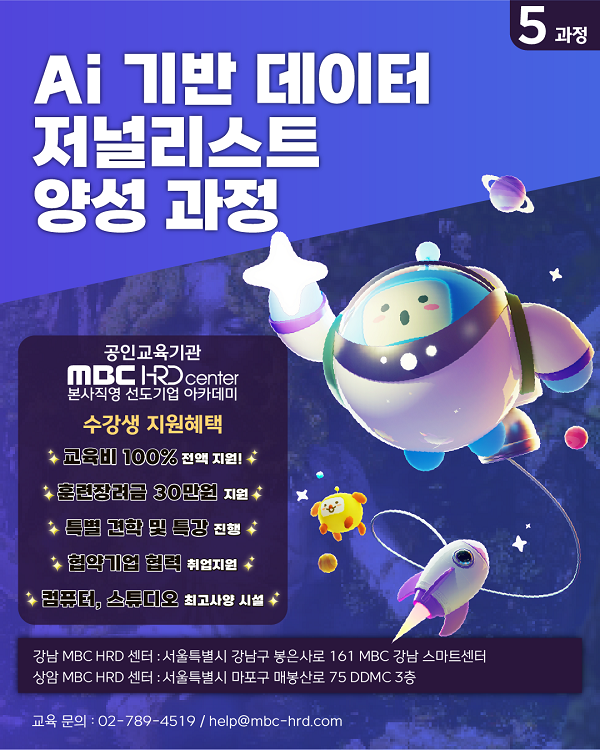 [MBC] 디지털 선도기업 ACADEMY 교육생 모집 (~11/10) 전액 무료! [Ai 기반 데이터 저널리스트 양성과정]