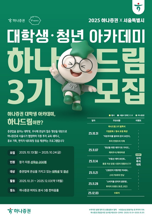 [하나증권x서울영테크] 대학생·청년 아카데미 하나드림 3기 모집