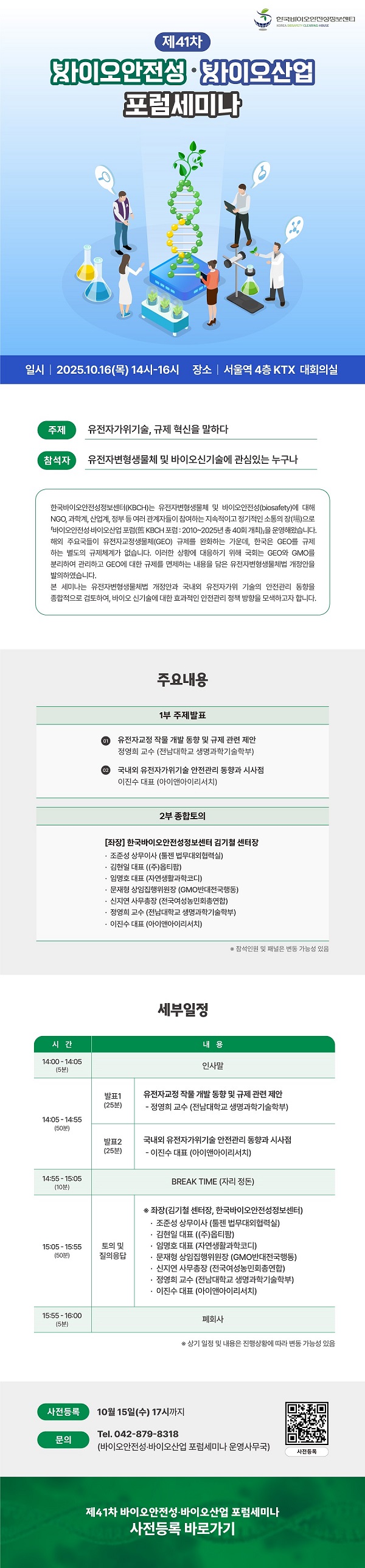 - 제41차 바이오안전성·바이오산업 포럼 세미나
