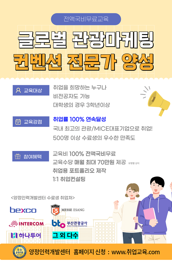 🚨이제는, 관광·MICE컨벤션 전문가로 양정인력개발센터에서 시작하세요!