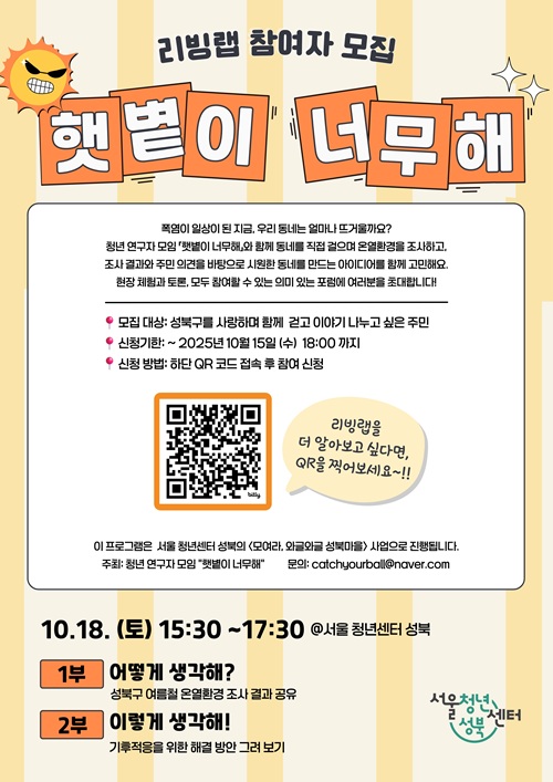 성북청년커뮤니티지원사업 ⌜햇볕이너무해 리빙랩 프로그램 ⌟