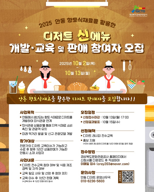 2025 안동 향토식재료를 활용한 디저트 신메뉴 개발교육 및 판매 참여자 모집