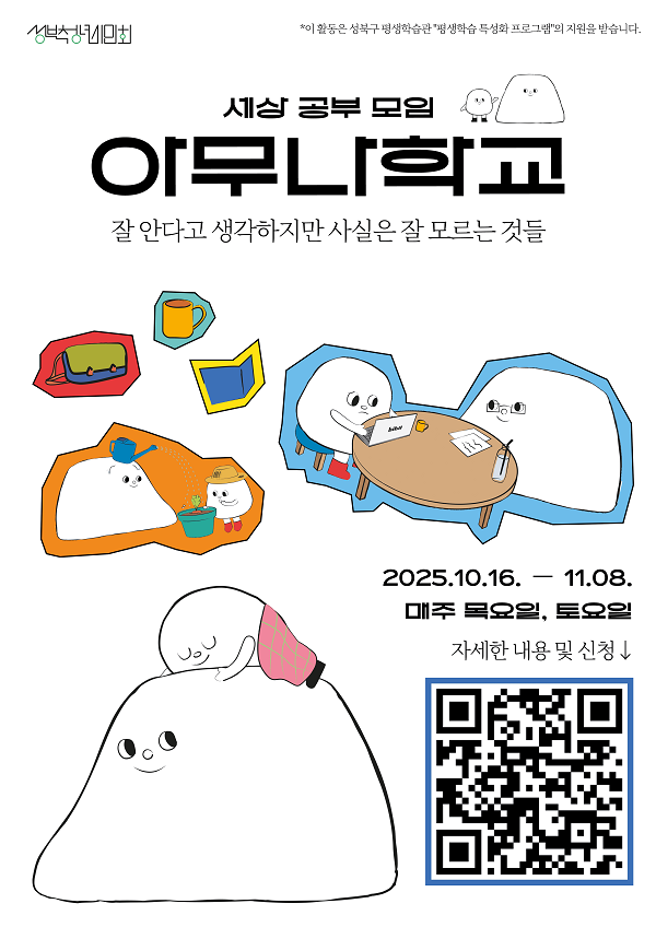 [성북청년시민회] 세상 공부 모임 “아무나학교” : 잘 안다고 생각하지만 사실은 잘 모르는 것들(~10/16)