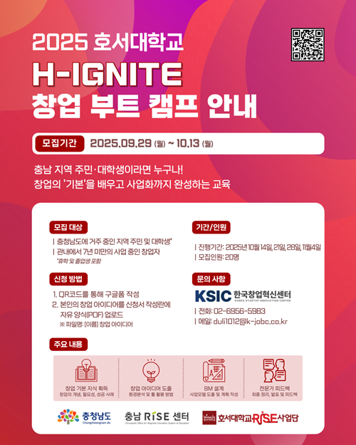 호서대학교 H-IGNITE 창업 부트 캠프가 여러분의 아이디어를 현실로 만들어 드립니다!