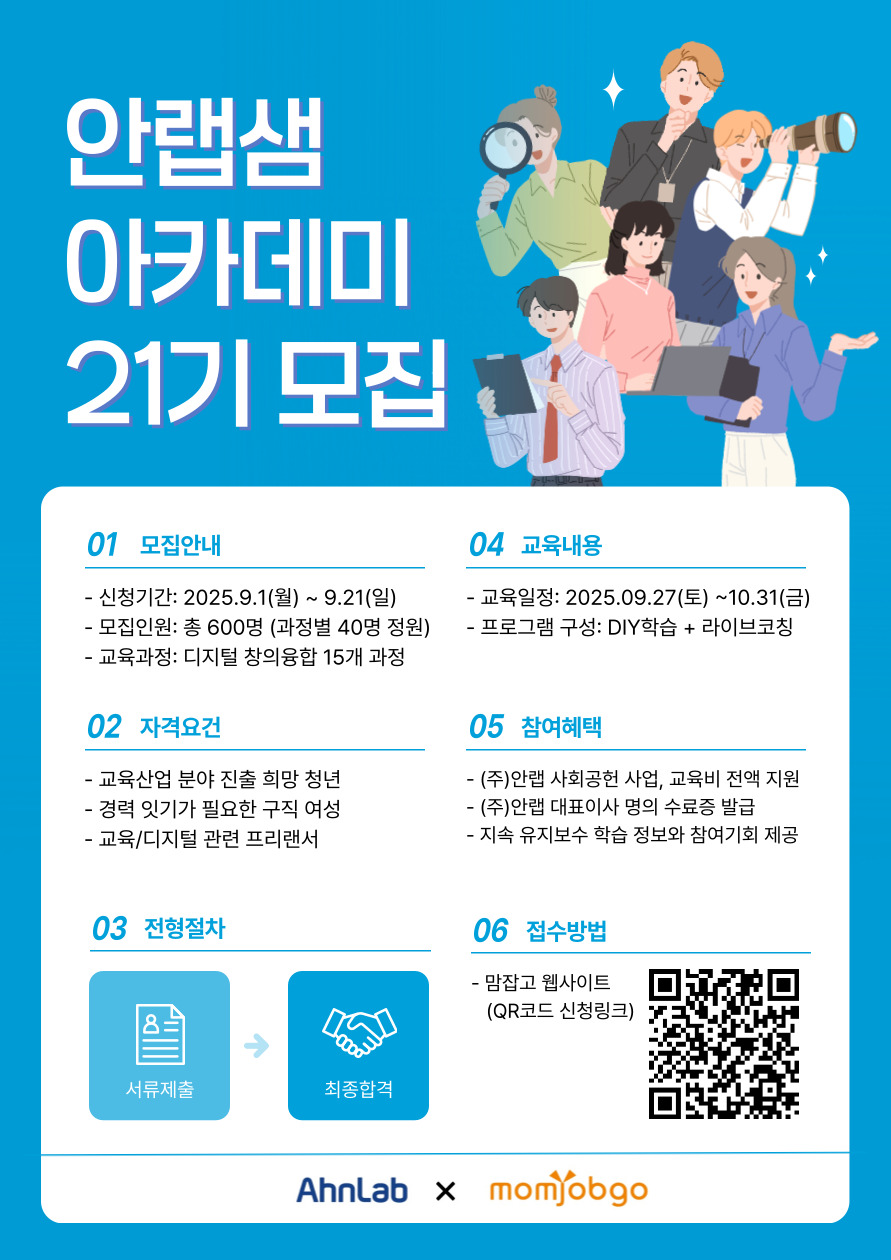 [(주)안랩 무료교육] 안랩샘 아카데미 21기 참여자 모집