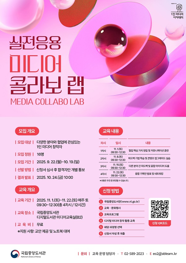 [전국/무료] 새로운 창작, 혼자가 아닌 함께! 국립중앙도서관 실전 응용 미디어 콜라보 랩