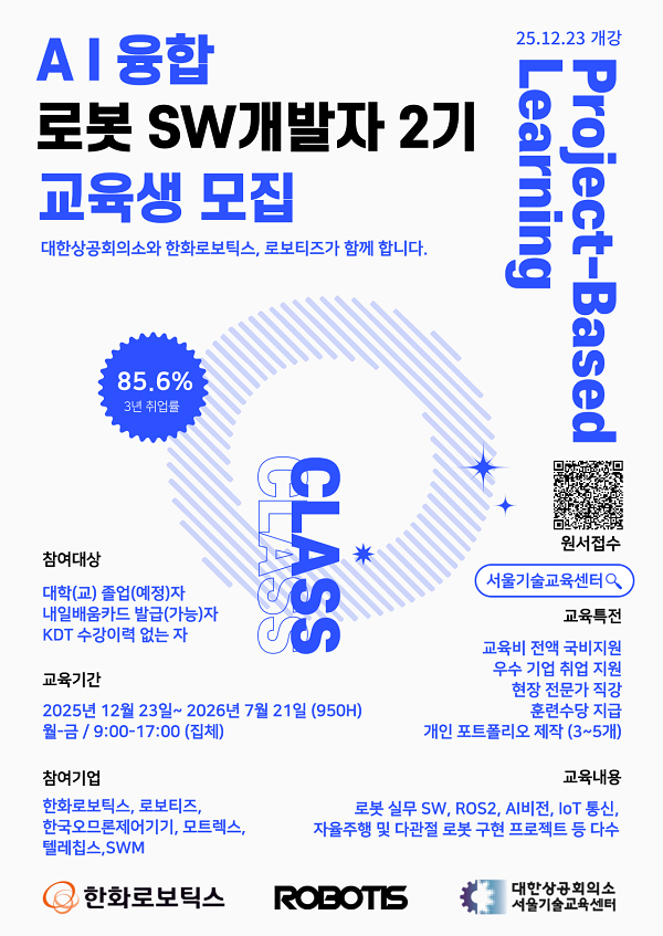 [한화로보틱스, 로보티즈] AI융합 로봇 SW개발자 2기 교육생모집 - 취업연계과정