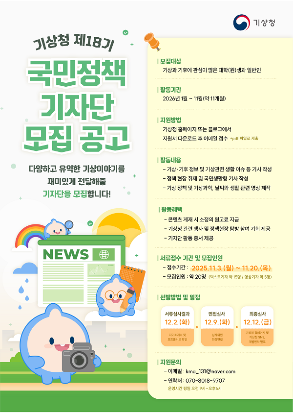 - 기상청 제18기 국민정책기자단 기사 취재 및 영상 콘텐츠 제작