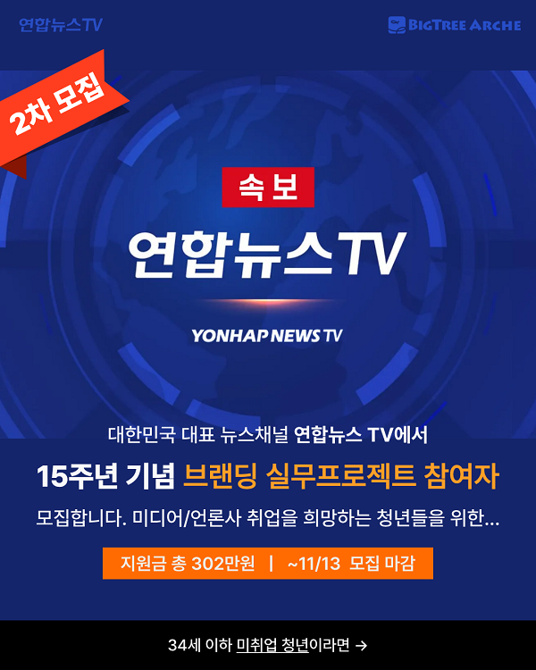 [~11/13 15시 최종마감] 연합뉴스TV 15주년 브랜드 마케팅 프로젝트 참여자 모집