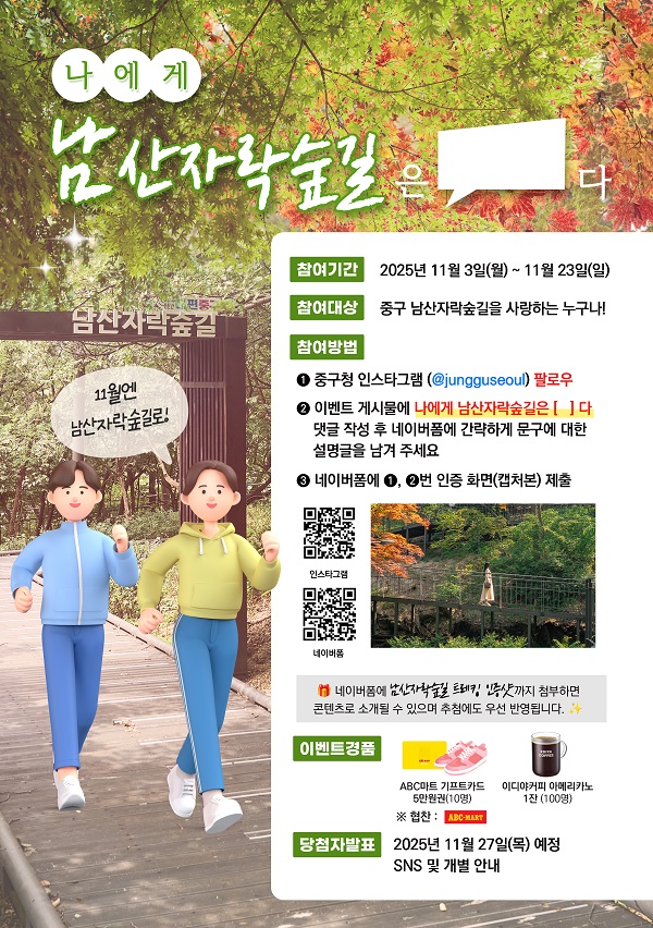 [이벤트] '나에게 남산자락숲길은 ○○다' 인스타그램 댓글 이벤트!