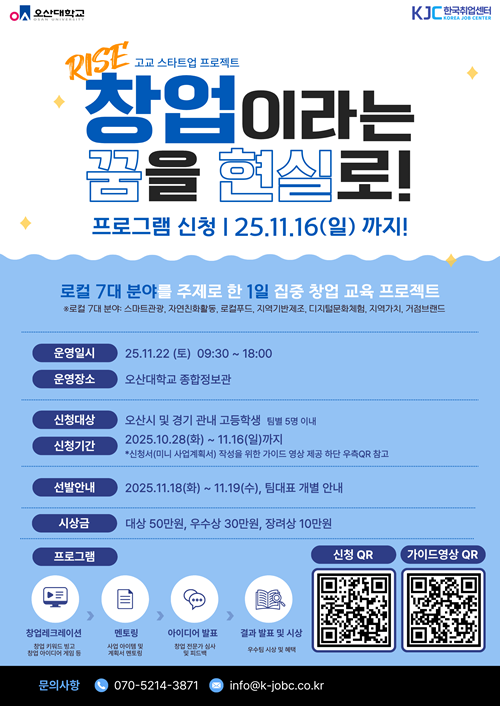 오산대학교 고교 스타트업 프로젝트 참여생 모집